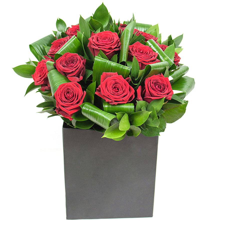 Our Splendid Red Roses Arrangement combines the rich hues of red roses with the lushness of aspidistra leaves and the delicate touch of ruscus. This unique bouquet brings style and elegance to any setting.